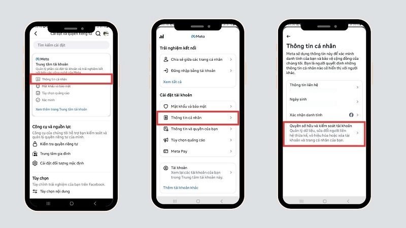 Bước 3: Trong menu cài đặt, tìm mục "Trung tâm tài khoản" hoặc "Thông tin cá nhân". Chọn "Quyền sở hữu tài khoản và kiểm soát".
