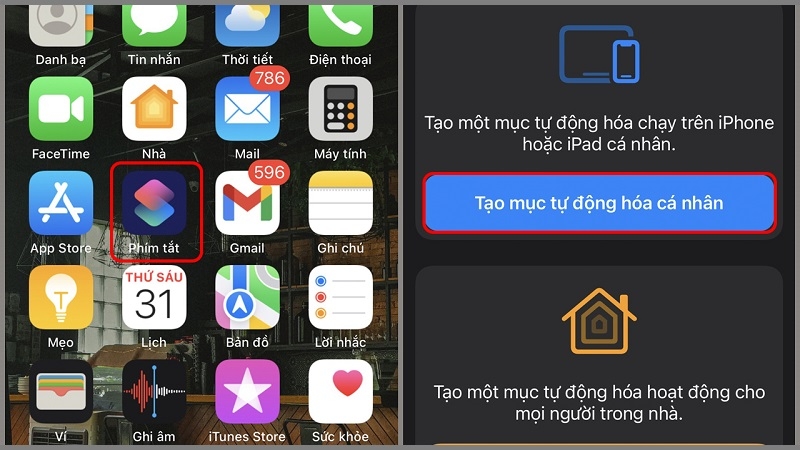Bước 1: Mở ứng dụng Phím Tắt (Shortcuts)