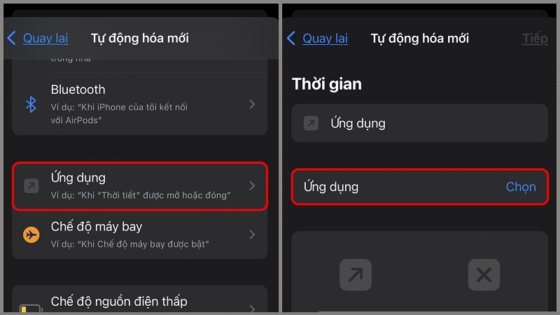 Bước 2: Chọn Tự Động Hóa (Automation) > Tạo Tự Động Hóa Cá Nhân > Ứng Dụng