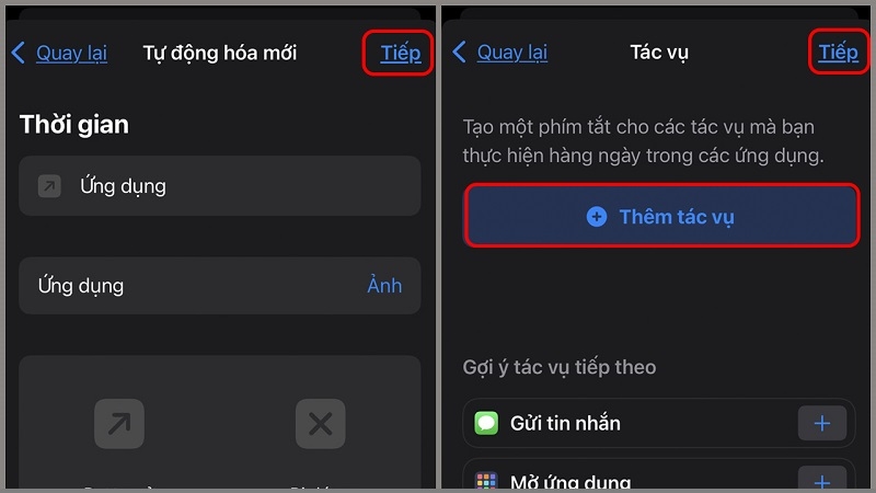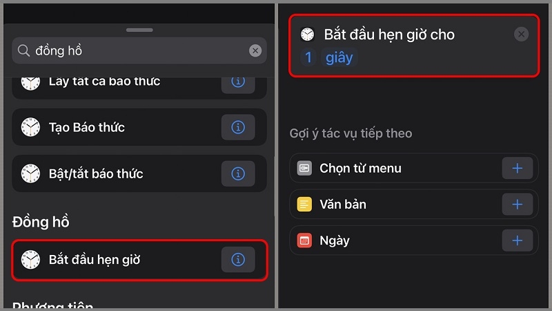 Bước 4: Nhấn Thêm Tác Vụ > Tìm kiếm "Bắt Đầu Hẹn Giờ" (hoặc "Start Timer" nếu thiết bị dùng tiếng Anh)