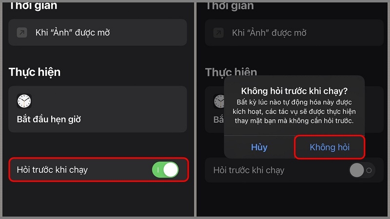 Bước 6: Gạt nút "Hỏi Trước Khi Chạy" sang trái và xác nhận "Không Hỏi"