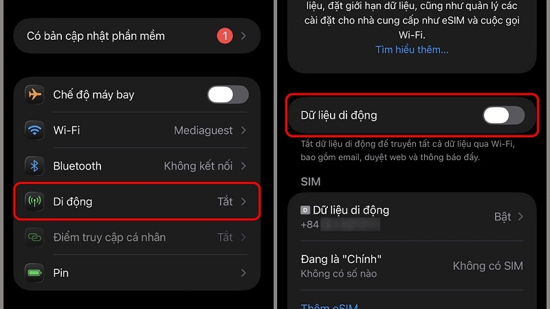 Bước 2: Vào Cài đặt > Mạng di động > Tắt Dữ liệu di động