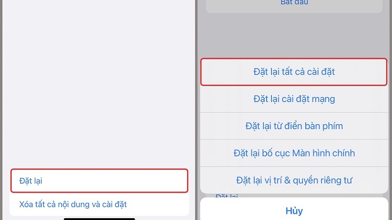 Bước 3: Nhấn Đặt lại