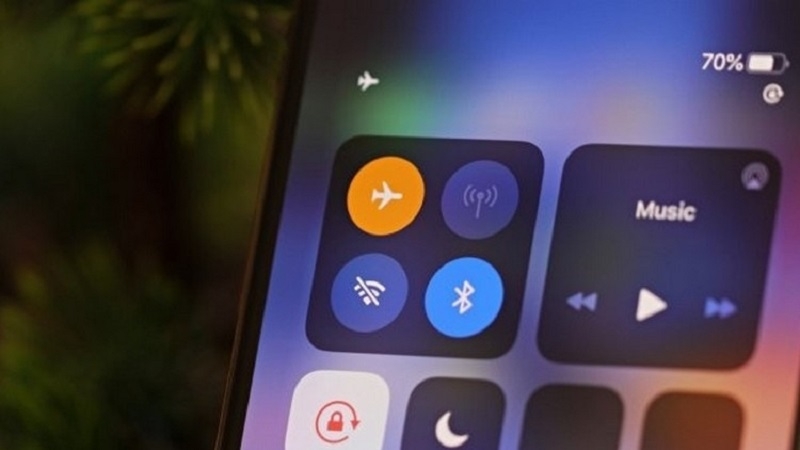 Vuốt từ góc trên bên phải xuống (iPhone X trở lên) hoặc vuốt từ dưới lên (iPhone 8 trở xuống) để mở Control Center, sau đó bật biểu tượng máy bay.