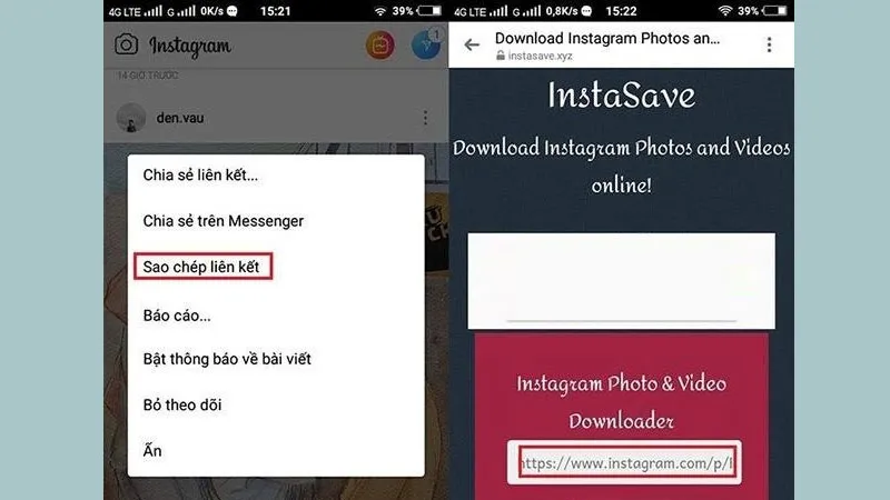 Sử dụng ứng dụng di động (ví dụ với InstaSave):