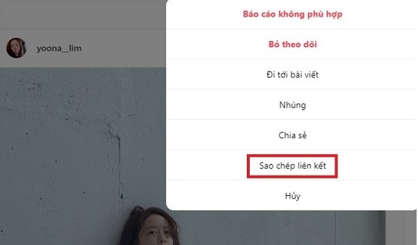 Bước 4: Chọn "Sao chép liên kết" (Copy Link)