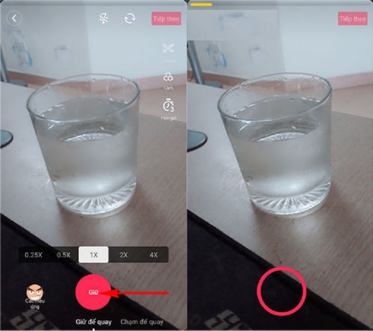 Bước 4 : Đến đây, các bạn sẽ thực hiện quay video như bình thường. Bằng cách bạn nhấn giữ phím Quay Video.