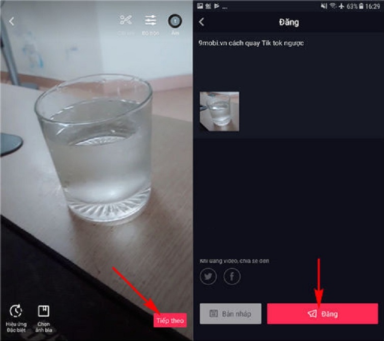 Bước 7 : Sau đó, để có thể đăng tải video quay Tik Tok ngược này, bạn sẽ ấn chọn mục Tiếp theo và xác nhận Đăng tải.