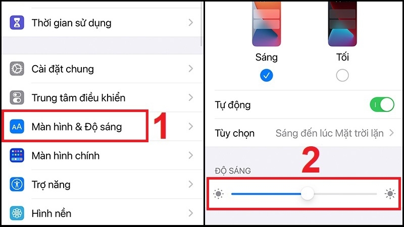 Ngoài việc kéo thanh độ sáng trong Trung tâm điều khiển, bạn nên kiểm soát thêm thời gian tự tắt màn hình để tiết kiệm pin tốt hơn, đặc biệt với người lớn tuổi hoặc người hay quên khóa máy.