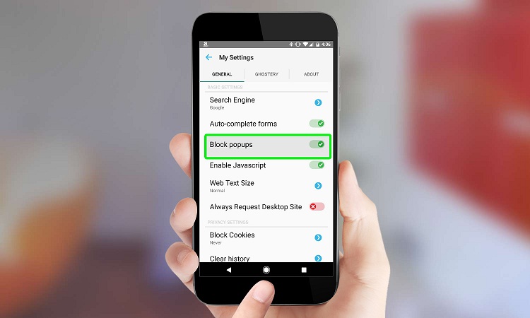 - Chạm vào nó và nhấn vào slide để tắt pop-ups trên trang web.