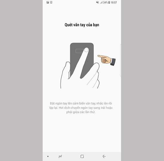 Bước 3: Sau khi màn hình chuyển giao diện mới, các bạn nhấn vào “Quét vân tay”.