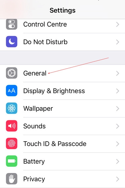 - Chọn General: Tìm và nhấn vào mục "General" trong danh sách cài đặt.
