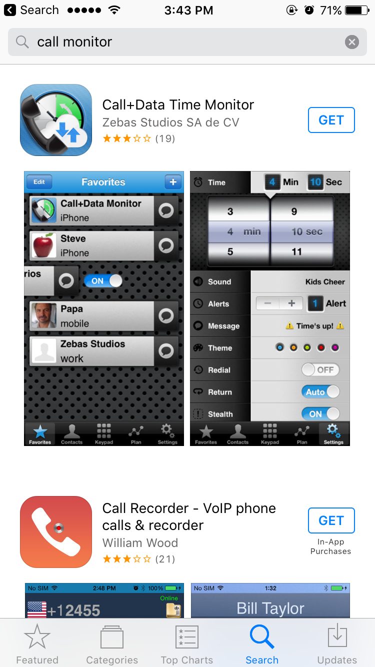 Bước 1: Đầu tiên, bạn vào App Store trên iPhone. Sau đó, nhập vào từ khóa "Call Monitor" tại thanh tìm kiếm => Tải và cài đặt ứng dụng về cho thiết bị.