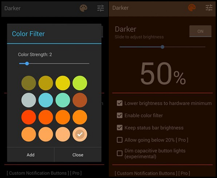 Tính năng nổi bật: Darker cho phép tùy chỉnh độ sáng, độ tương phản và gam màu theo ý muốn. Ứng dụng cung cấp nhiều bộ lọc màu, giúp giảm mỏi mắt và phù hợp với các điều kiện ánh sáng khác nhau.