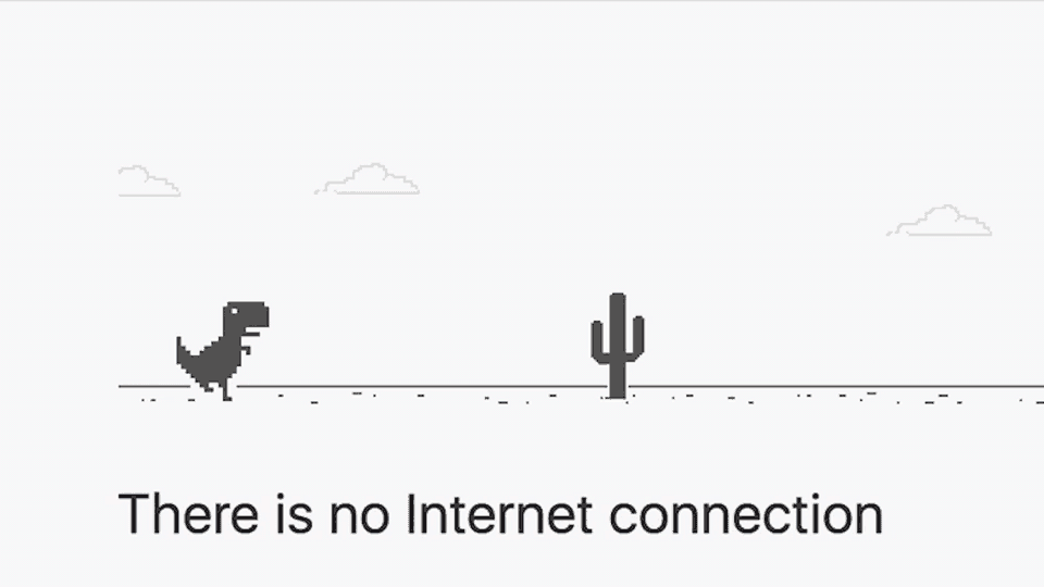 Mở trình duyệt Google Chrome trên máy tính của bạn và ngắt kết nối wi-fi. Khi bạn thấy trang hiển thị thông báo 'Không có kết nối internet' với hình ảnh động của một con khủng long, hãy tận hưởng trải nghiệm thú vị này bằng cách nhấp vào thanh địa chỉ và khởi chạy trò chơi ẩn T-Rex. Điều này sẽ mở ra một thế giới giải trí không kém phần thú vị, đưa bạn vào cuộc phiêu lưu đơn giản nhưng đầy hấp dẫn của con khủng long T-Rex nhảy qua các chướng ngại vật.