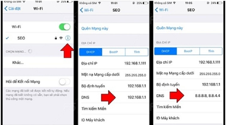 Áp dụng giải pháp này đã giúp nhiều người khắc phục tình trạng tải ứng dụng chậm trên iPhone. Đơn giản, bạn chỉ cần vào Cài đặt >> Wifi >> chọn biểu tượng chữ "I" >> Nhập dãy DNS và sau đó kiểm tra lại để xem kết quả.