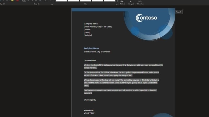 Lưu ý: Bạn cần tài khoản Office 365 để chỉnh sửa trực tuyến. Nếu không có, hãy tải file về và mở bằng Microsoft Word.