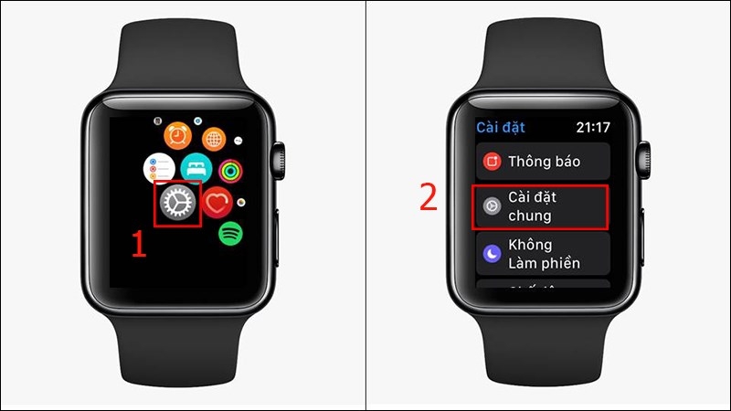 Bước 1: Xóa Apple Watch về cài đặt gốc: Cài đặt đồng hồ > Cài đặt chung > Đặt lại > Xóa tất cả nội dung.
