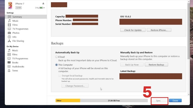 - Khi iTunes chuyển đến phần "Sync"