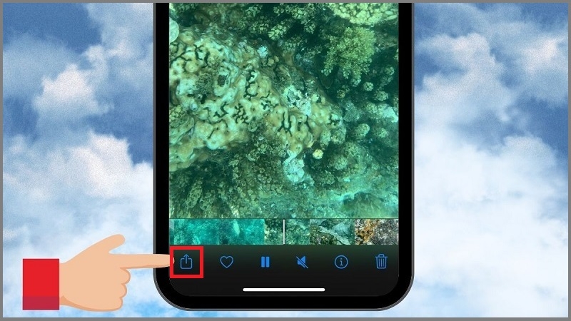 - Nhấn vào biểu tượng Chia sẻ (hình vuông có mũi tên hướng lên)