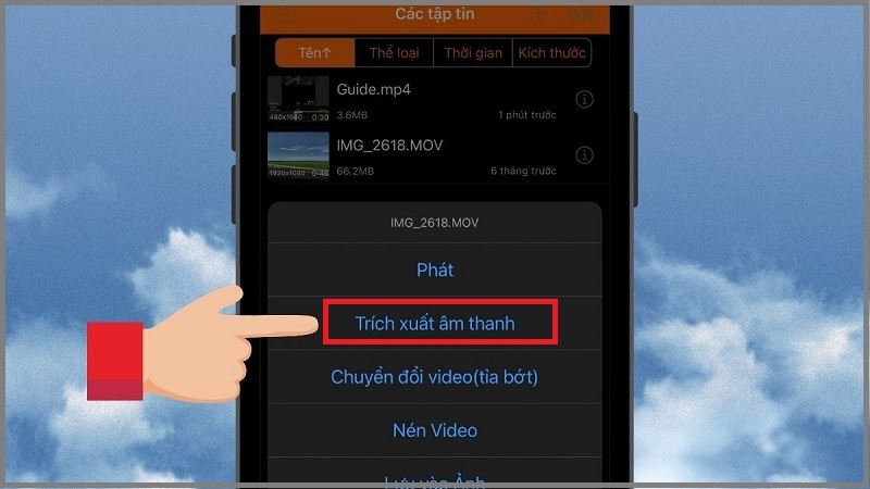 Bước 5: Trích xuất: Quay lại trang chủ, chọn video vừa thêm, sau đó nhấn "Trích xuất âm thanh"