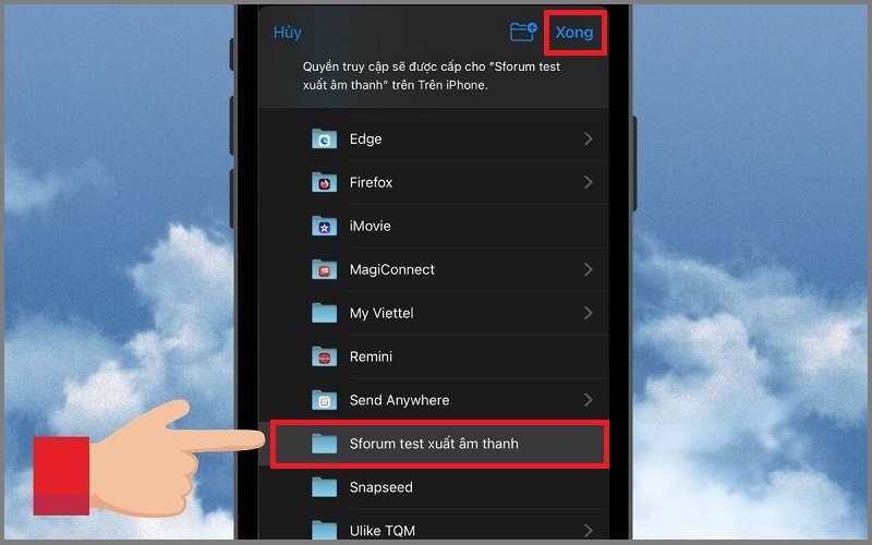 - Chọn thư mục vừa tạo và nhấn "Xong"
