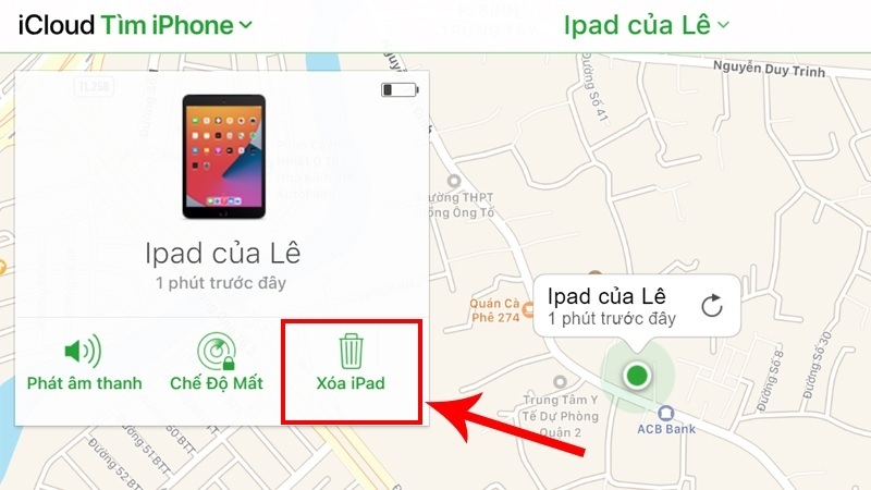 Bước 7: Chọn tính năng Xóa iPad để có thể xóa dữ liệu trên thiết bị từ xa.