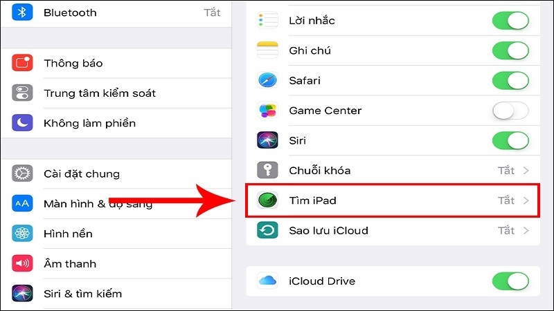 Để bật tính năng Find My iPad, các bạn chỉ cần tiến hành theo các thao tác đơn giản như sau: