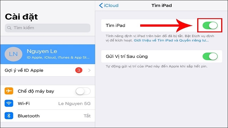 Bước 4: Cuối cùng, hãy gạt thanh trượt bên cạnh tính năng Tìm iPad sang phải để bật tính năng hoàn tất.