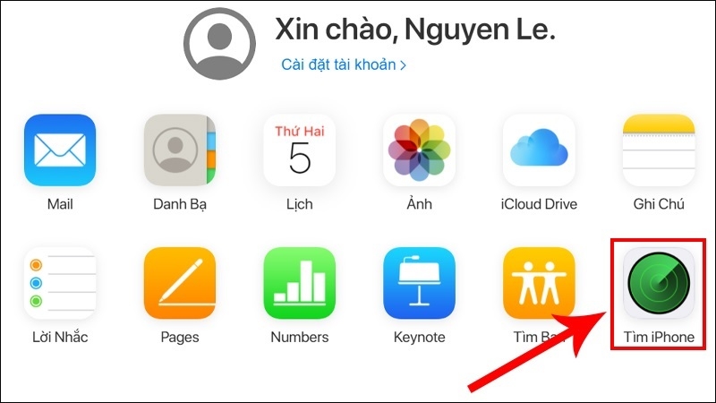 Bước 3: Bạn chọn Tìm iPhone để tiếp tục.