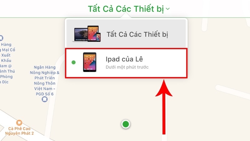 Bước 4: Tại cửa sổ Tất Cả Các Thiết bị, bạn hãy nhấn vào thiết bị iPad đang cần tìm.