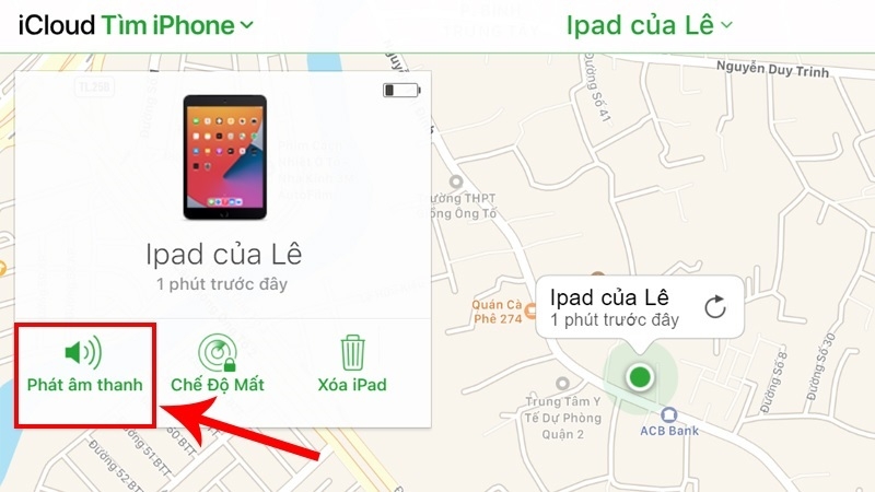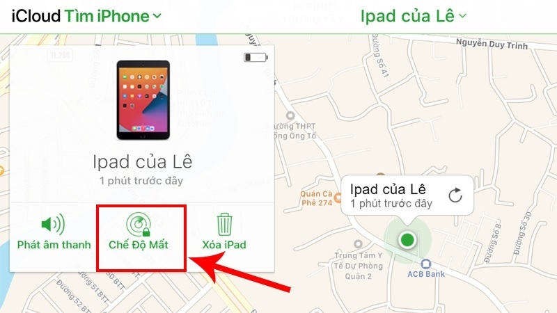 Hệ thống sẽ tiến hành dò tìm những thiết bị của bạn. Khi iPad bị mất được kết nối mạng internet, bạn sẽ biết vị trí chính xác của thiết bị đang ở đâu.