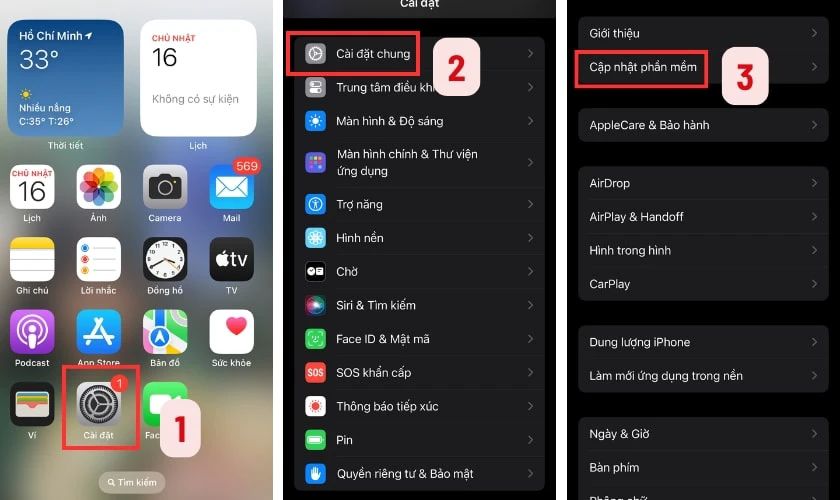 - Vào Cài đặt → Chung → Cập nhật phần mềm