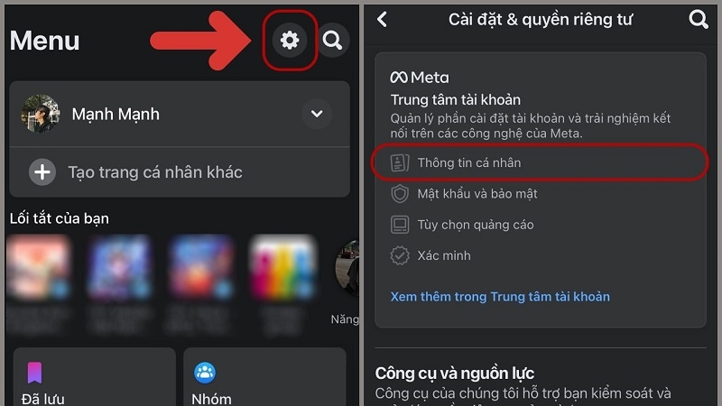 Chọn Thông tin cá nhân