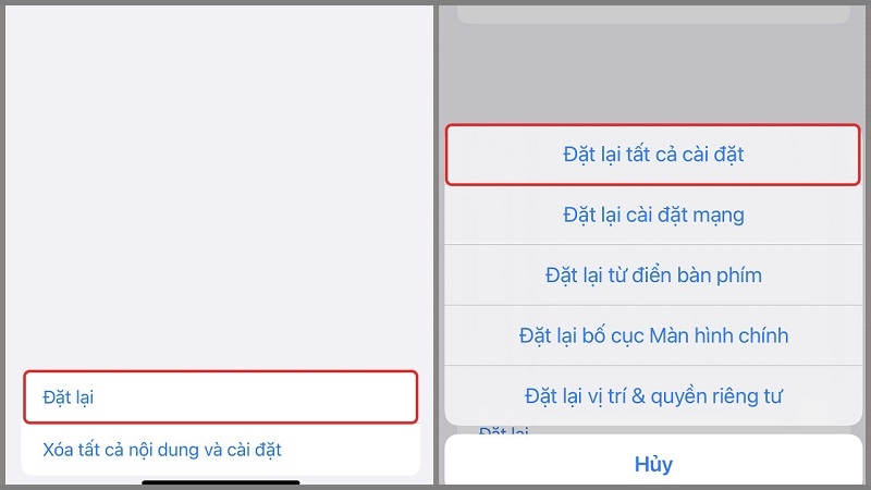 - Chọn "Đặt lại tất cả cài đặt" (Reset All Settings)