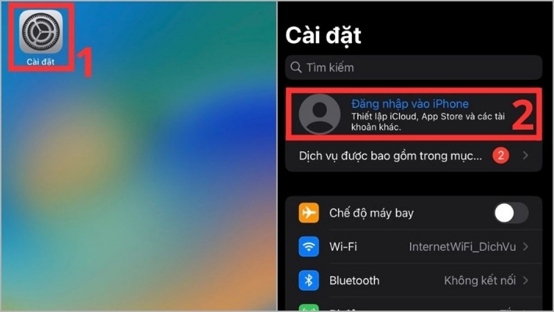 Vào Cài đặt > Đăng nhập vào iPhone.