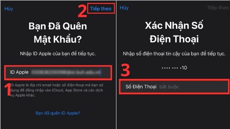 Nhập Apple ID và số điện thoại đã đăng ký.