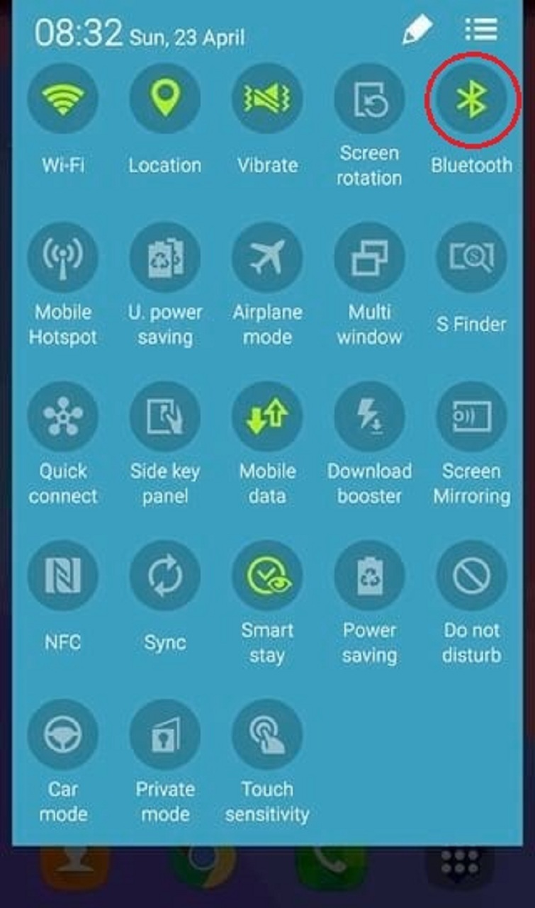 Vuốt thanh thông báo xuống, chọn biểu tượng Bluetooth để kích hoạt.