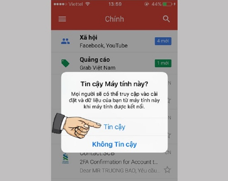 Khi iPhone hiển thị thông báo Tin cậy máy tính này?, chọn Tin cậy để cho phép kết nối.