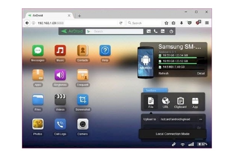 Sử dụng giao diện AirDroid: