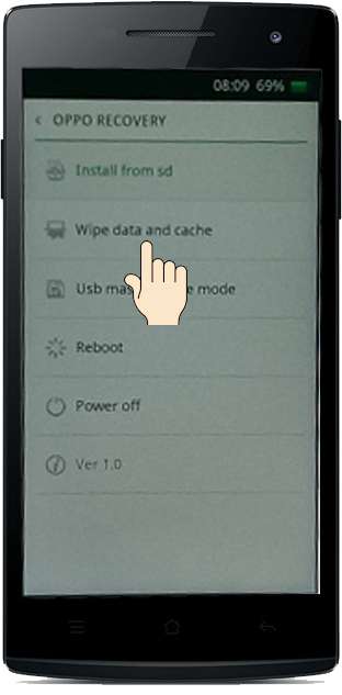 Bước 4: Tiếp tục dùng phím âm lượng của điện thoại di chuyển đến dòng “Wipe data and cache”