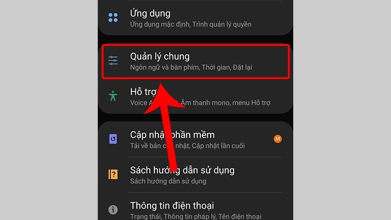 Vào Cài đặt >> Quản lý chung hoặc Cài đặt bổ sung (tùy dòng máy).