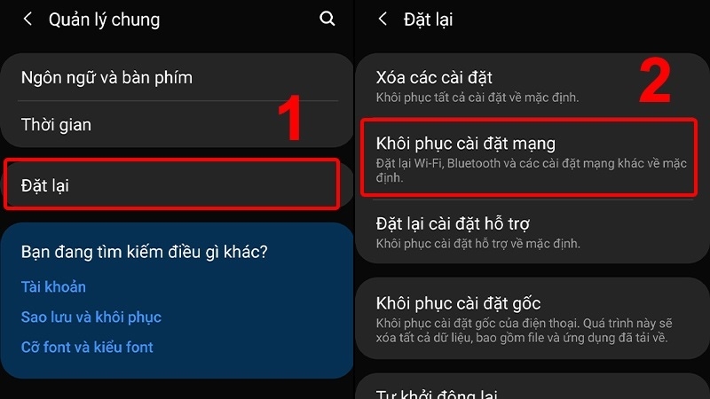 Chọn Đặt lại >> Khôi phục cài đặt mạng.