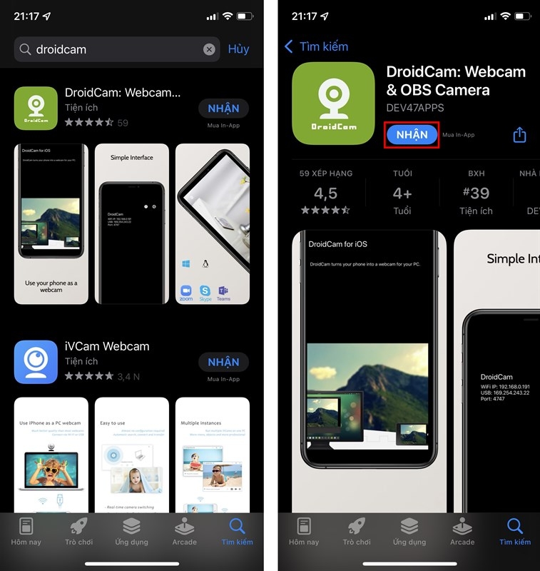 - Cài đặt ứng dụng iVCam trên điện thoại