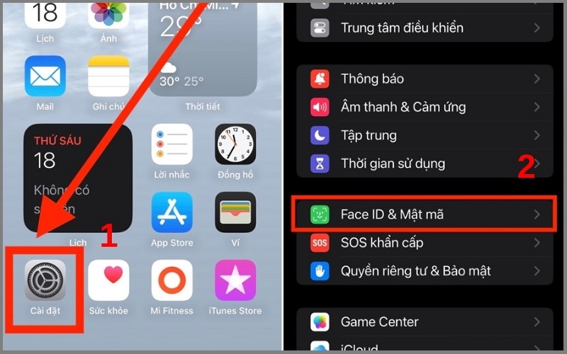 Bước 1: Vào Cài đặt > Face ID & Mật mã (Face ID & Passcode)