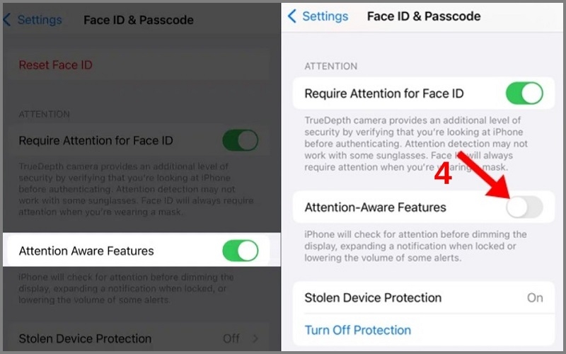 Tính năng Attention Aware hoạt động thông qua cảm biến Face ID. Khi phát hiện bạn không nhìn vào màn hình trong một khoảng thời gian nhất định, màn hình sẽ tự động giảm độ sáng, sau đó mờ dần và tắt hẳn. Đây là tính năng thông minh giúp tiết kiệm pin, nhưng đôi khi bị nhầm lẫn với lỗi phần cứng.