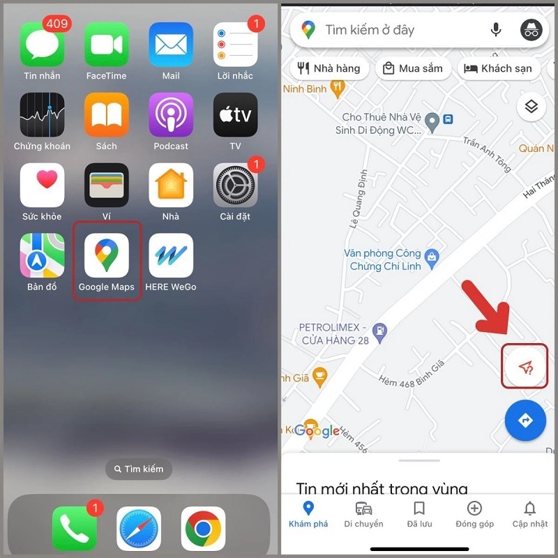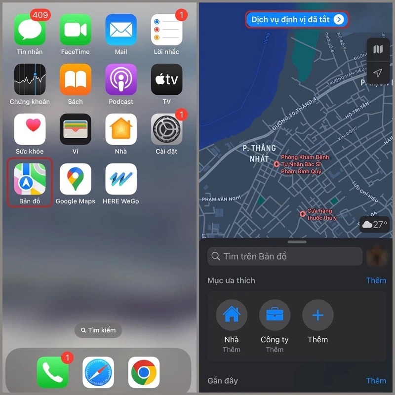 Xác định vị trí hiện tại trên iPhone bằng ứng dụng Bản đồ