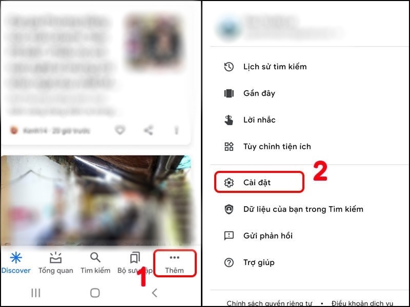 Bước 1: Đầu tiên, bạn mở ứng dụng Google lên trên điện thoại. Sau đó, nhấn vào tùy chọn Thêm ở góc dưới bên phải màn hình >> Chọn Cài đặt để tiếp tục.