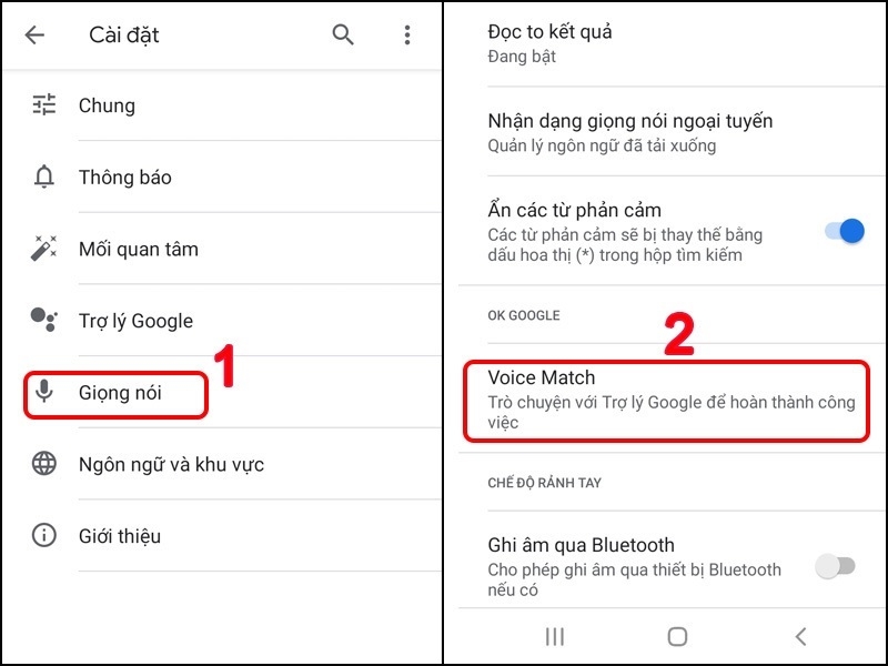 Bước 2: Khi cửa sổ Cài đặt hiển thị, bạn lần lượt chọn vào Giọng nói >> Chọn Voice Match.