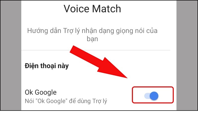 Bước 3: Cuối cùng, bạn chỉ cần gạt thanh trượt ở mục Ok Google sang phải để kích hoạt thành công.